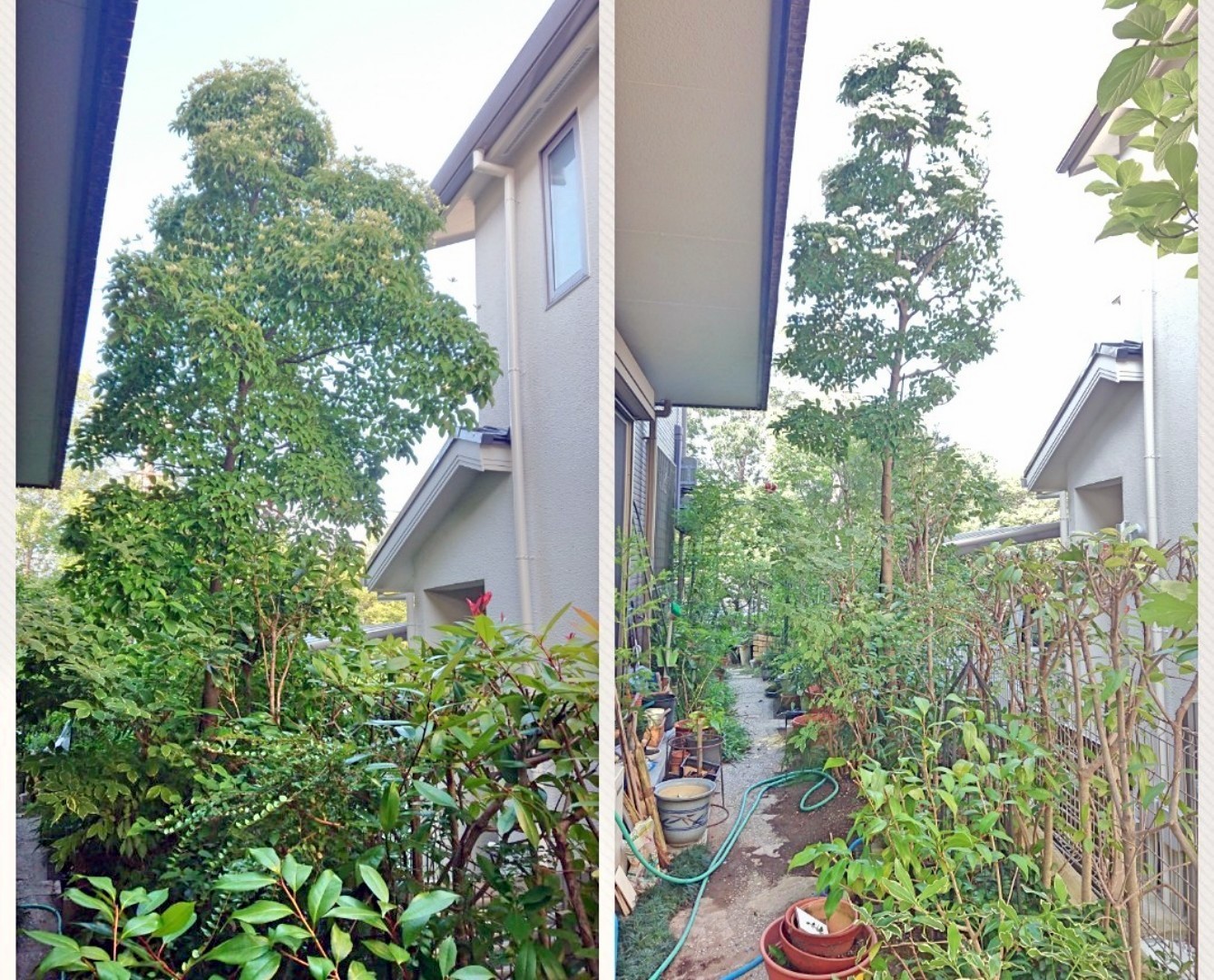 お隣のお家に出てしまってる枝の強剪定と全体的にスッキリさせてくださいとのことで剪定をさせて頂きました(*^_^*)